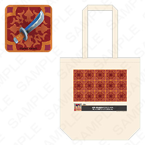 「風来のシレン6」のダンジョンのお店をモチーフとしたトートバッグ。アイテム缶バッジをランダムで一つ封入しています。
