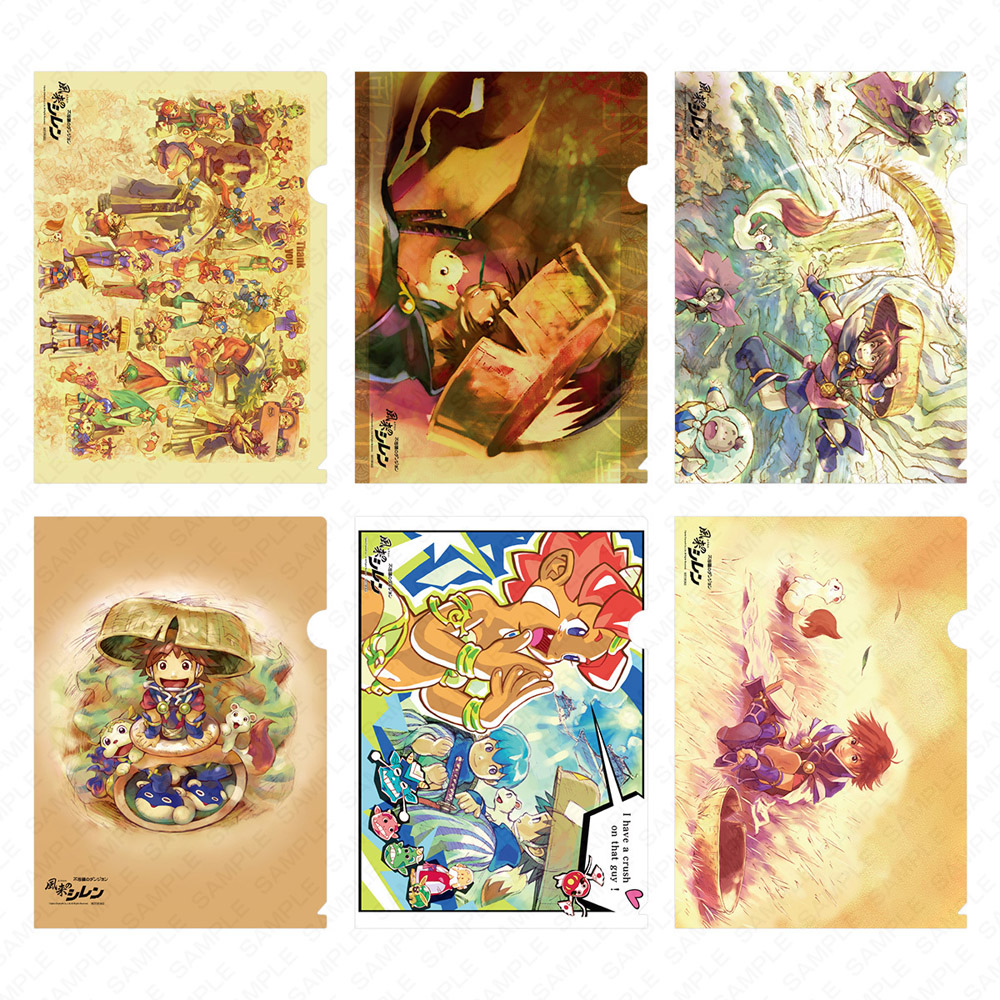 「不思議のダンジョンストア」会期中でしか手に入らない購入特典も用意。1会計につき5,000円(税込)以上お買い上げごとに、A4クリアファイル(全6種)をランダムで1枚プレゼントいたします。また、会場内にてアイテムステッカー(全10種)を無料配布いたします。