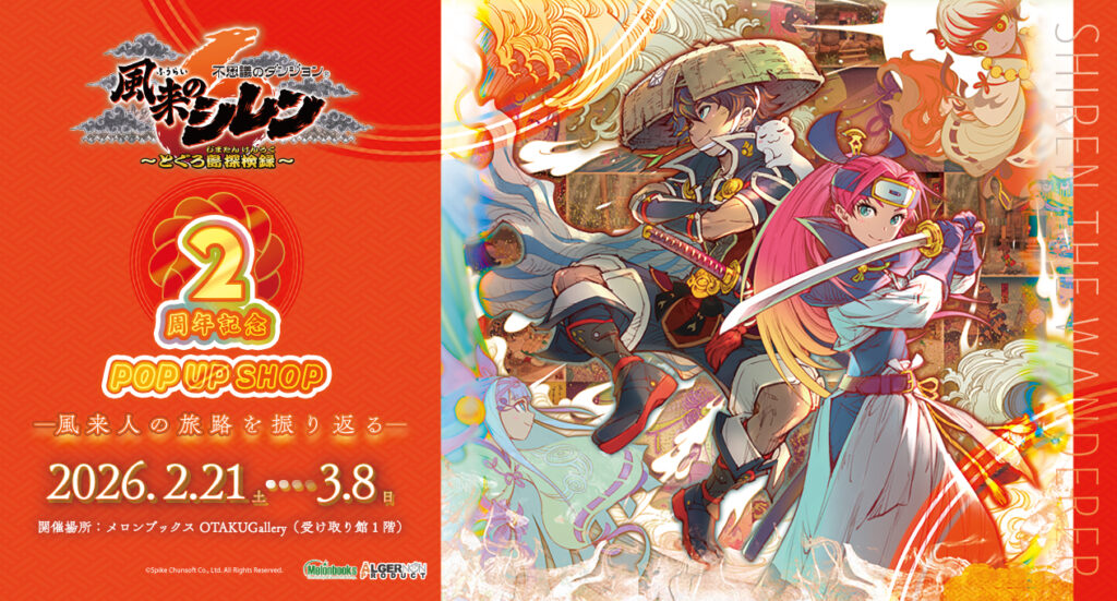 『不思議のダンジョン 風来のシレン6 とぐろ島探検録』の発売から2周年を迎えたことを記念して、ポップアップショップを、2026年2月21日(土)から3月8日(日)までの期間、東京・メロンブックスOTAKUGalleryにて開催いたします。