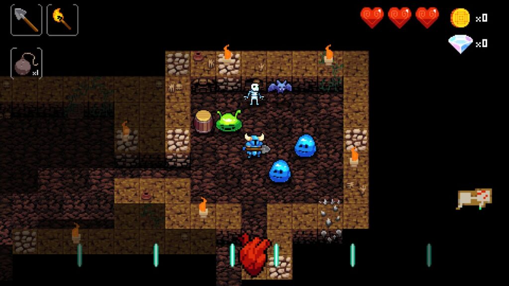『クリプト・オブ・ネクロダンサー』は、プレイする度にダンジョンの構造やアイテムの配置が変化する「ローグライクゲーム」と、リズムに合わせてプレイする「リズムアクションゲーム」の特徴を併せ持ったダンジョン探索ゲームです。プレイヤーは音楽のビートに合わせてキャラクターを操作し、スケルトンやゾンビ、ドラゴンなど襲い来るモンスターを倒しながら、ランダム生成されるダンジョンを突破していきます。